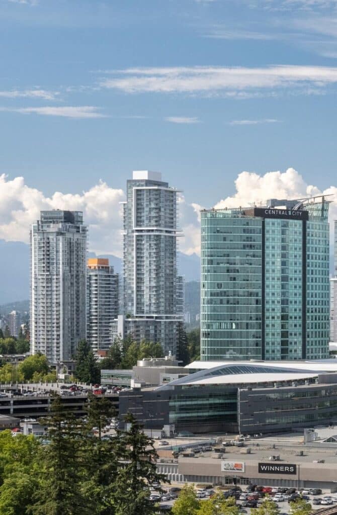 North Surrey is Surrey’s downtown core and a bustling hub of business, education and culture. Anchored by landmarks like the City Centre Library and Simon Fraser University’s Surrey campus, the area is rapidly transforming into a modern, walkable urban core. With high-rises, public art, and green spaces, the area blends innovation with livability. Its central location and SkyTrain access make it a key destination.